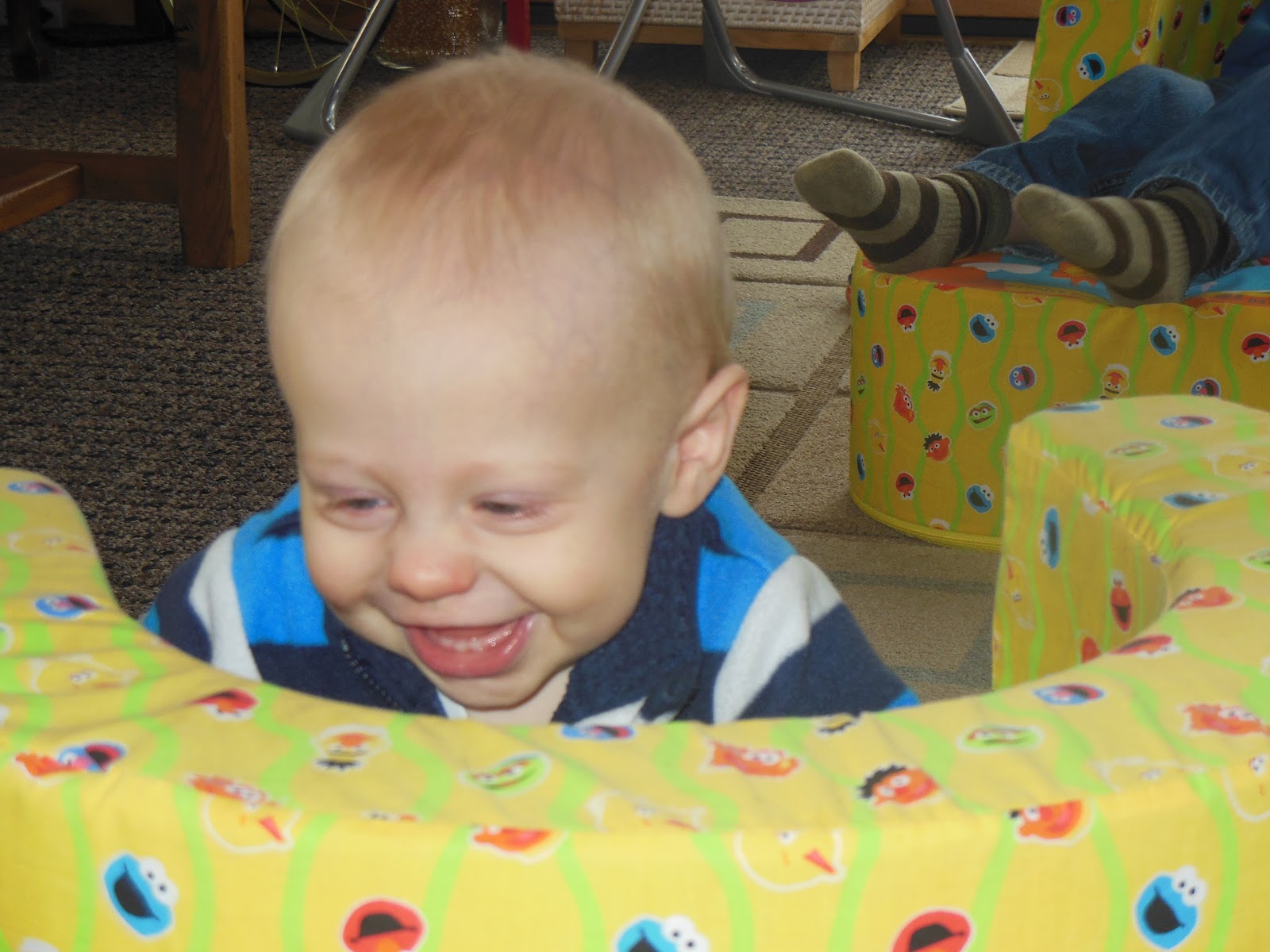 Maverick entertains himself quietly sometimes while they are doing projects. Hey, you can never have enough Sesame Street friends surrounding you!